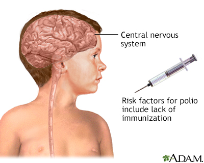 Poliomyelitis is a communicable disease caused by viral infection and occurs through direct contact with infected secretions. Polio is found worldwide, but immunization has reduced the incidence. Clinical polio affects the central nervous system (brain and spinal cord). Disability is more common than death.