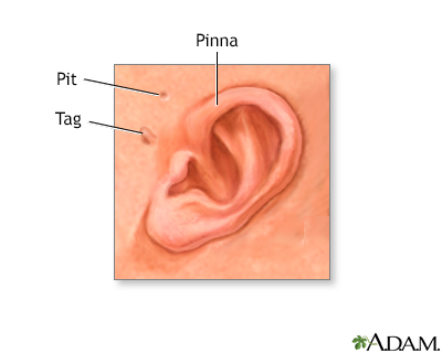 Many normal children are born with ears that are less than perfect and that may stick out. However, low-set ears, absent pinna, and abnormal folds can be associated with various conditions.